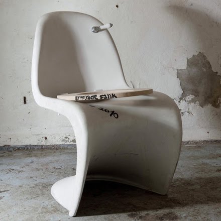In honor of the anniversary Vitra UK launched a national Panton Chair Competition and asked architects and designers to reinterpret the modern chair. Some treated is as art, others made it interactive. The winning design was an entry from Jump Studios and the 2nd and 3rd place winners were Ben Adams and Maris Interiors, respectively. Entries ran the gamut and included everything from Post-It note covered to Swarovski crystal studded versions.